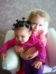 Here's a photo session of Hanna and Nela. As you can see, Nela didn't want much to do with Hanna ... After this shot where Nela was yanking on Hanna's necklace Hanna got up and left.